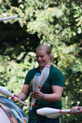 De circusworkshops leidden de aandacht wat af van deze break-up, maar vlak voor het middageten liep de woordenwisseling tussen de exen Belle en het Beest helemaal uit de hand. En plots waren deelnemers en begeleiders - geheel onverwachts - betrokken in een gigantisch watergevecht!